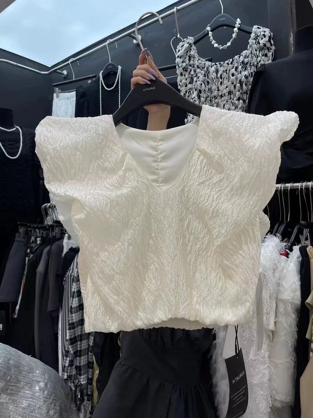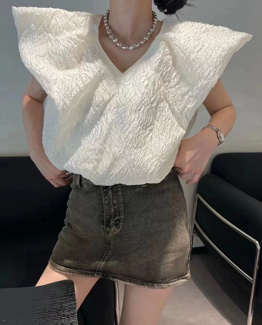 Vネックノースリーブホワイト、あなたのスタイルを一段と洗練された印象に演出する必須アイテムです!
