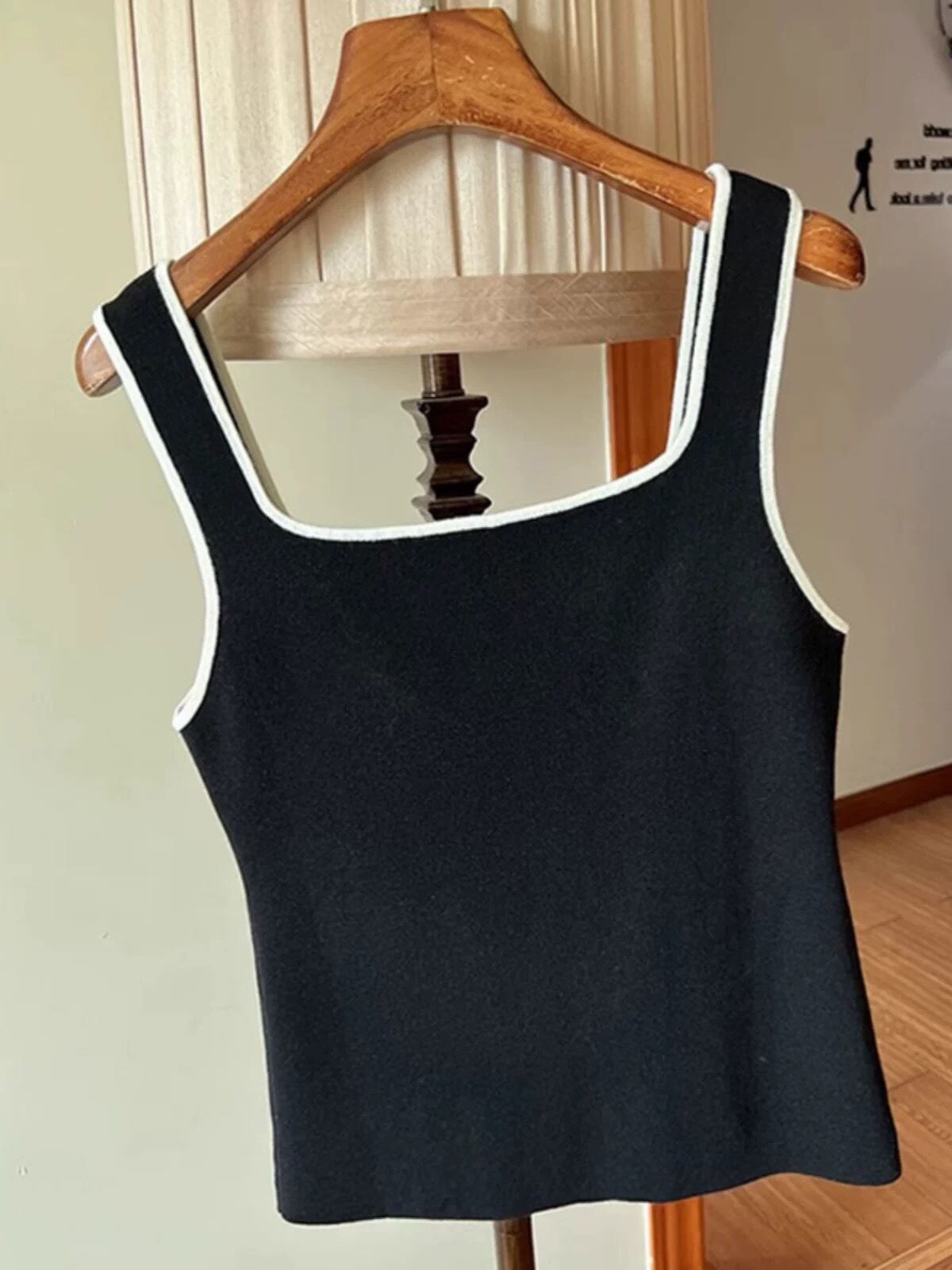 バイカラータンクトップブラック、あなたのスタイルに洗練された個性をプラスする必須アイテムです!