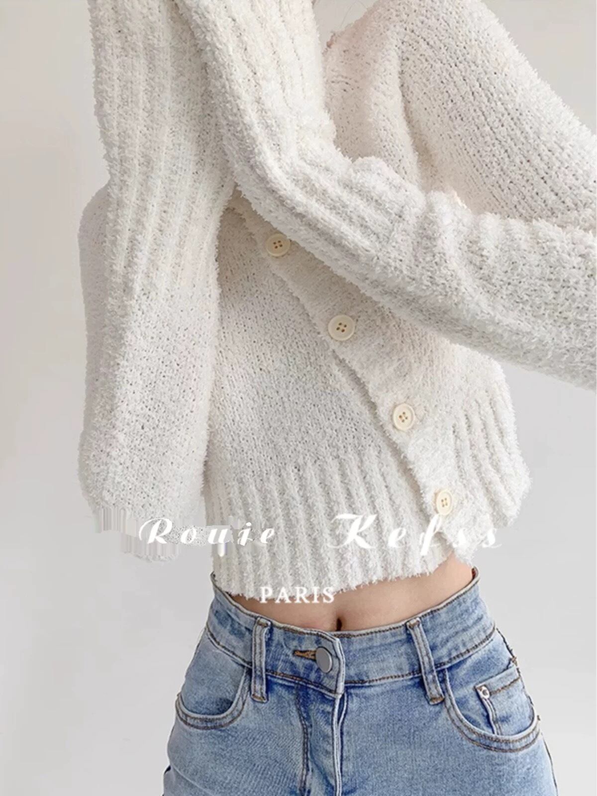 ホワイトカーディガン、あなたのスタイルに洗練された清潔感と柔らかさを加える必須アイテムです!
