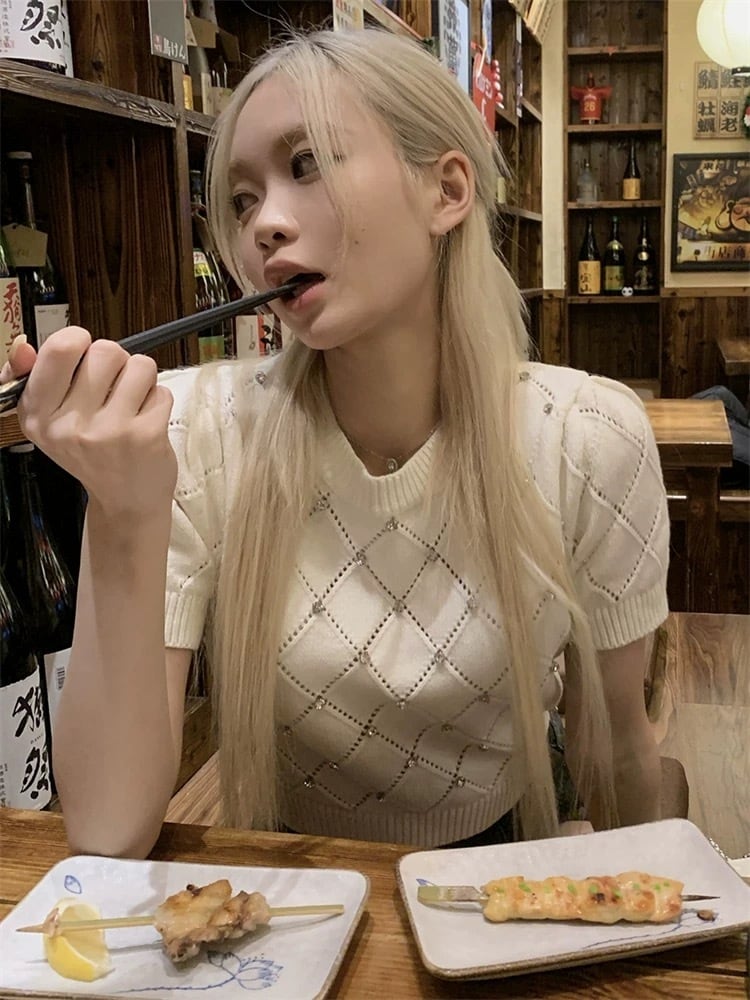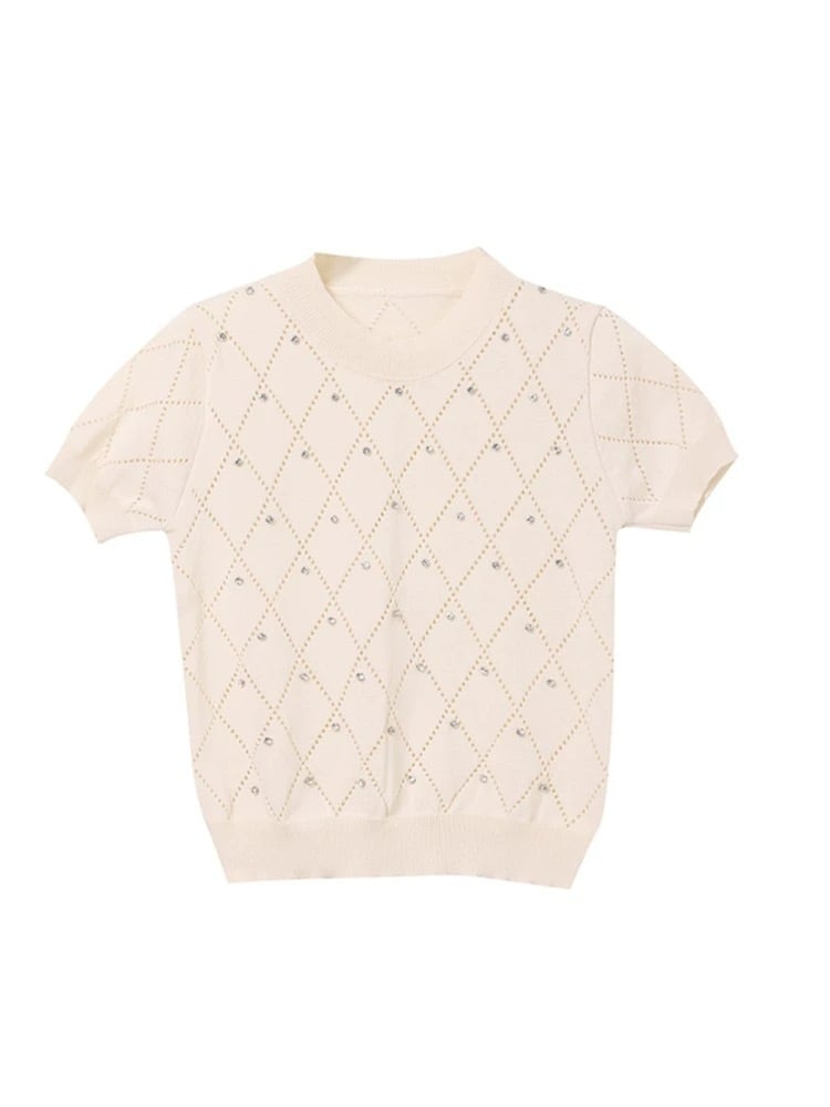 半袖ビジューニット、あなたのスタイルに華やかさと爽やかさをプラスする必須アイテムです!