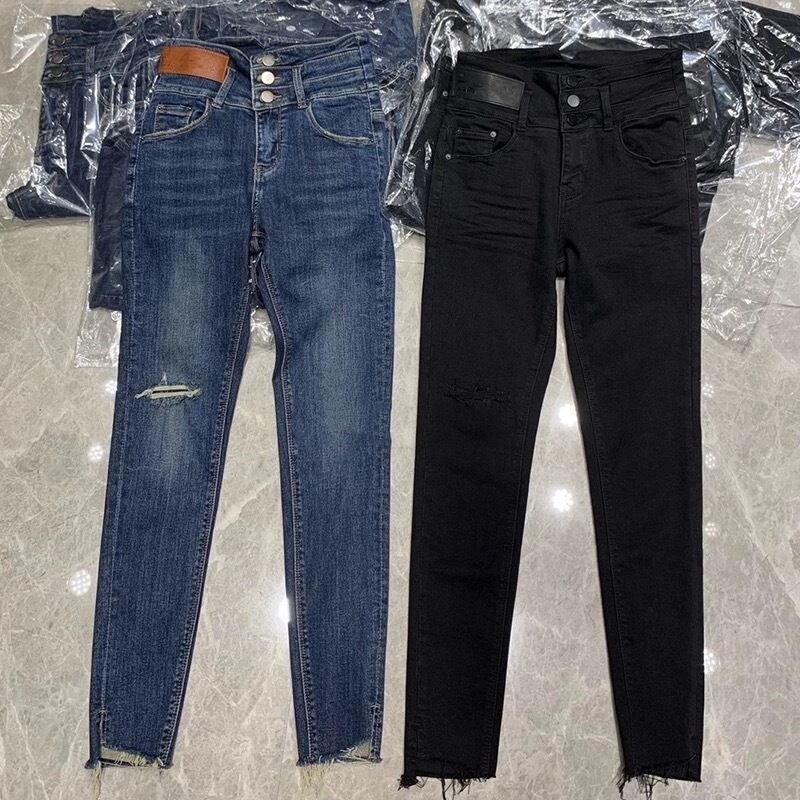 美脚トリプルボタンデニムパンツ