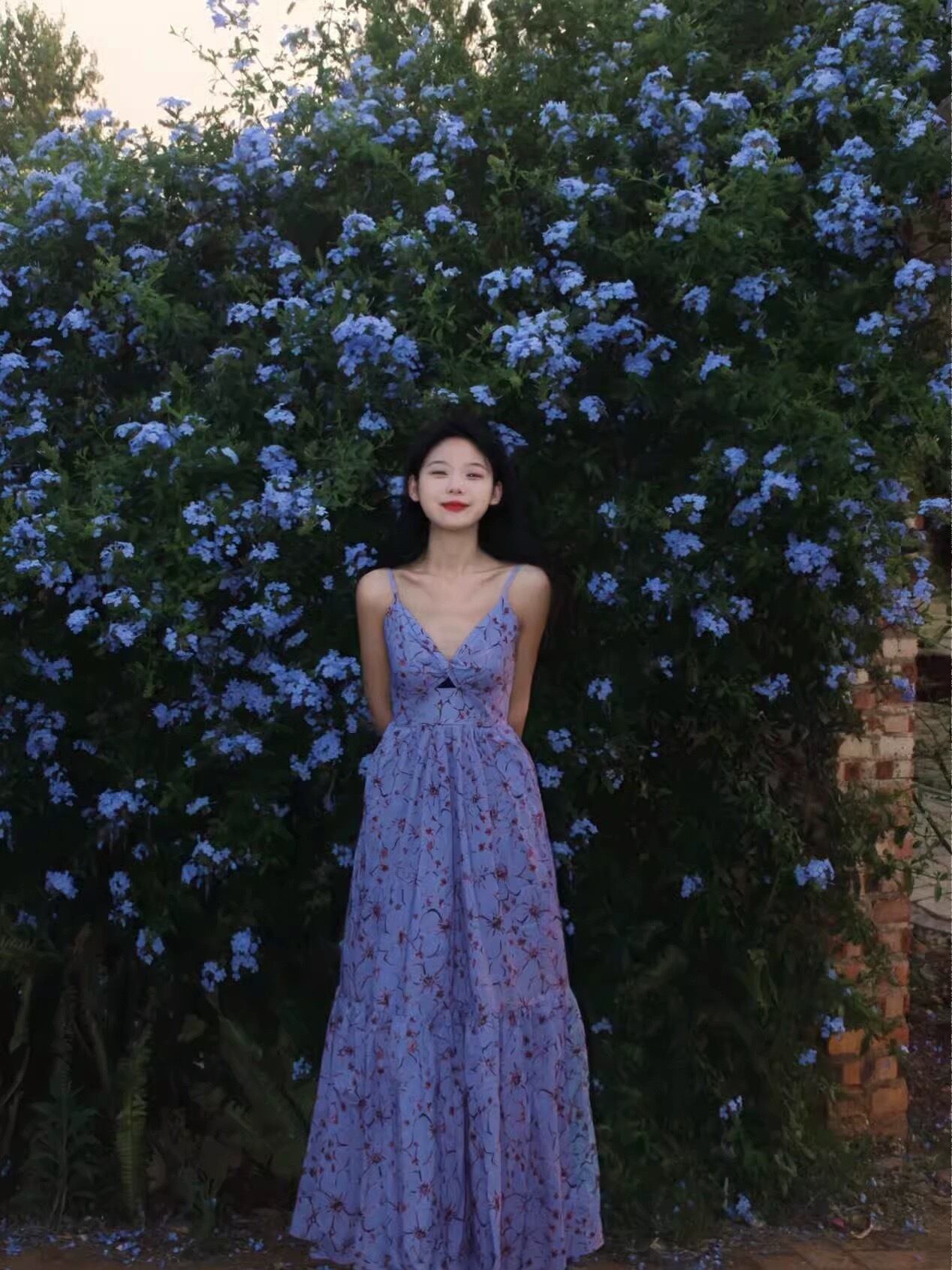 花柄サスペンダーマキシドレス