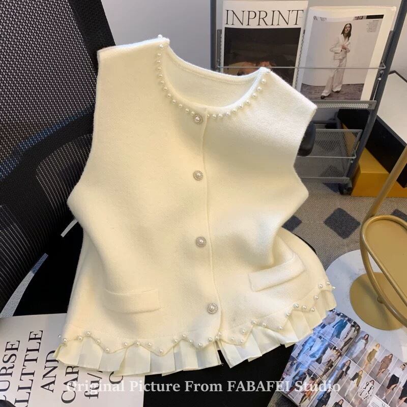パールが沢山あしらわれた人とかぶりにくいデザインのフリルベスト